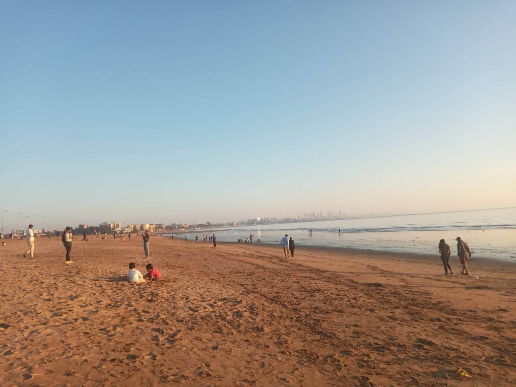I walk to the sea again, giving the city a second chance. The sea of life seems sparser and calmer. As if it wants to be seen. My eyes follow two boys, possibly twins, kicking a ball around, and then getting bored of it and moving to building something in the sand. A third boy wants to be a part of the building game but is not allowed in. He stands quietly, watching over what he can’t join. The breeze is cool, sieving the clogging smell and making it lighter. Just a little bit. The colours of the setting sun seep into the sea and land, shades of orange one moment, pink and violet, another. I see the silhouette of a couple holding hands and standing at the shoreline. They kiss.