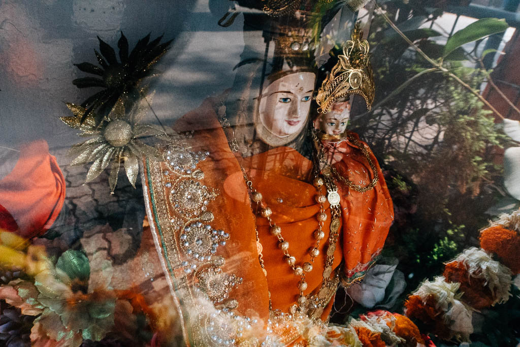 The images that follow take you on a walk through different parts of Mumbai, providing glimpses of the ordinary sacred, discreetly folded into the everyday life of the city, through deities stuck on a wall or an auto, set in a clearing in a street corner, discarded under a tree or even carried on one’s own body. Continuities of grace, of familiarity and of memory all hold themselves in these shrines. Yet, these deities that have travelled with migrants also disrupt a singular identity of the city, defying institutionalized boundaries that separate the sacred from the profane, and the shrine from the public, infusing the city with their multiplicities and moulding themselves to find new homes and new intimacies in the city.