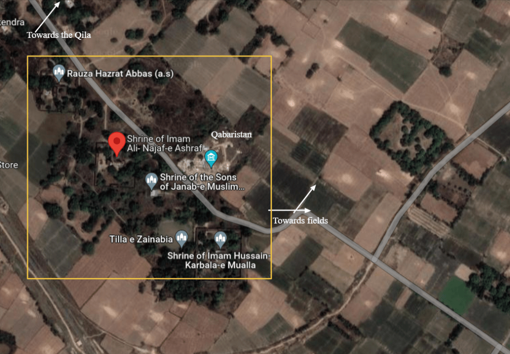 I visited qasbah Mahmudabad in the winter of 2019. Its water bodies, orchards, shrines, the shops lining the main road that leads to the Qila, small karkhanas (workshops) and ashraf5 neighbourhoods mirrored things that I have read about in both Urdu memoirs and academic writings and seen in films. In fact, the elaborate Muharram julus (procession) in Muzaffar Ali’s Gaman (1978) was filmed in the Qila of Mahmudabad. Mahmudabad’s Muharram, of which the Qila and the shrines leading to Karbala6 are the main nodes, drawing people from far-off places. A group of kids that took me around the shrines mapped the qasbah in terms of the Muharram rituals—they pointed out the imambaras, stealthily enacted the different kinds of matam (mourning), sketched Zuljanah’s7 route and spoke of the crowd with enchantment. By the time we reached Karbala, I had an idea of how these kids experience certain localities of their qasbah, or at least how they want to present their experience of the qasbah to visitors. S, the eldest amongst them, proudly invited me to visit Mahmudabad during Muharram to see the julus. It is the month of mourning, but also a month of spectacles, that makes their qasbah a unique place.